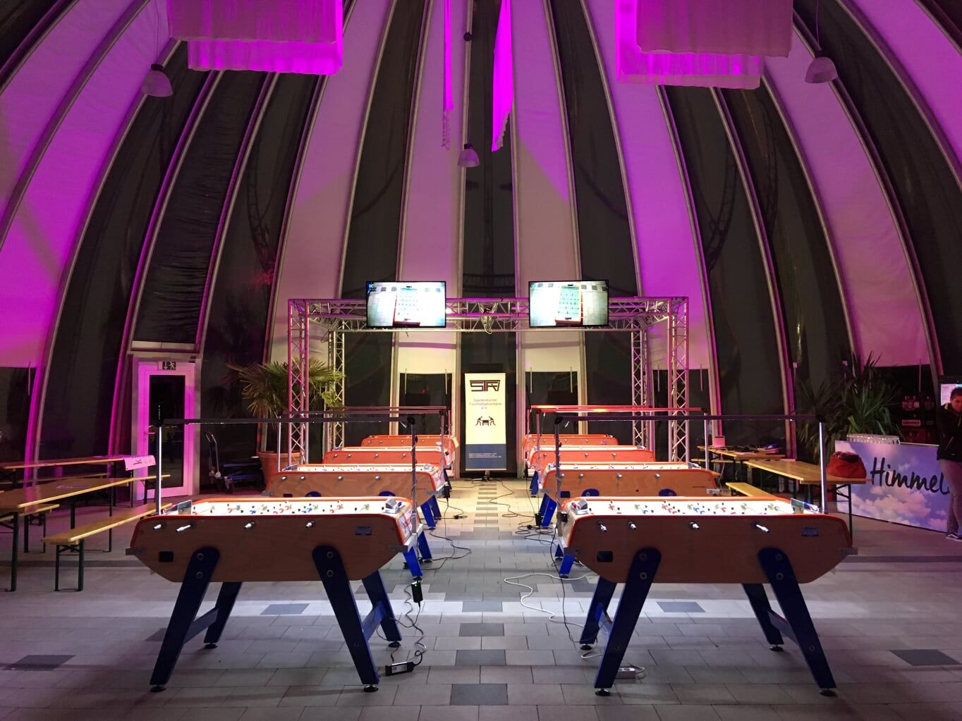 St. Wendel. Das hieß 100 Tischfußballspiele, 600 Teilnehmer aus 20 Nationen, 4 Tage Turnierbetrieb von 9 bis 24 Uhr. Als wir diese Veranstaltung mehrfach(2016,2017, 2018)erfolgreich durchgeführt hatten, entstand die Idee dieses Know How als Dienstleistung für Privatleute, Unternehmen und öffentliche Einrichtungen anzubieten. Kooperationspartner waren schnell gefunden und so konnten wir loslegen. Mittlerweile ist daraus eine Full Service Eventagentur entstanden.
